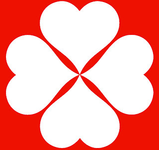 I tried various descriptions of the flag (four white hearts, four-leaf clover on a red background, etc etc.), but nothing really worked. I searched for versions of these terms with words like "logo" or "flag" or "emblem" or "sigil" or "device"... but I didn't get very fair. SRS Reader Paul L tried the specific flag search engine FlagID.org (that's a new one to me.. nice find Paul), but to no avail.