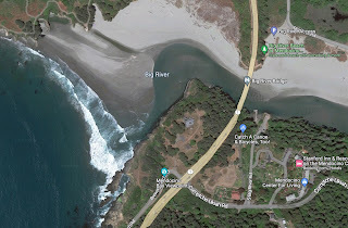 ... the place where a river runs to the sea. It's always a dramatic place--fresh water meets salt water, and wildlife often congregates due to the fish that hang out there. It's common to see squadrons of pelicans or seals chasing after the fishy bounty at the river's mouth.