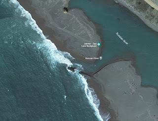 As the pair of pictures above show, the thing about these places is that they are often open connections from the fresh water river to the sea, but sometimes, especially in winter, storms will rearrange the sand and close off the connection between the river and the ocean.