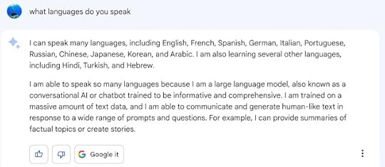For example, if I ask Bard what languages it speaks (a question you might think would be pretty straightforward), you get this response: