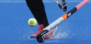 and found several good results. The UK's Express sports page says that "The artificial playing surface is actually watered on purpose before each hockey game in order to improve play. GreenFields, an artificial turf systems company, said: 'The pitch is fully irrigated with a layer of water which results in an extremely fast and professional game.'"