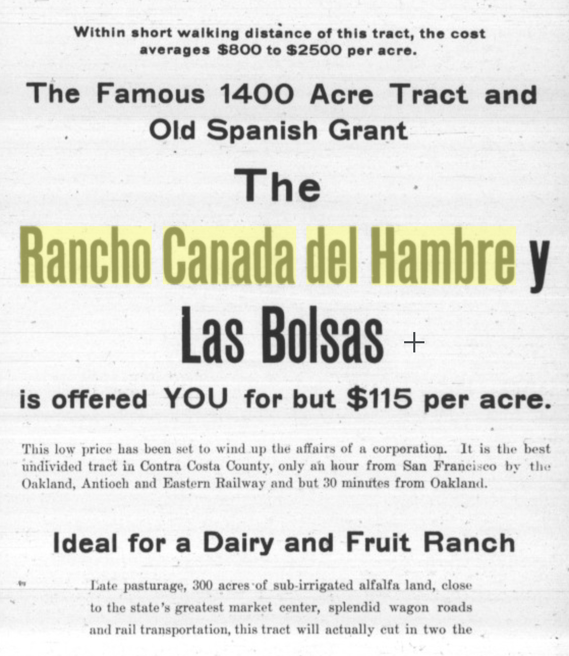 If you do the obvious searches (e.g., [ Rancho Canada del Hambre ] or [ Rancho Briones ]), you'll find a LOT of land transactions. Here's one such sale (part of my deep dive taught me that Rancho del Pinole was just to the SW of Rancho Canada del Hambre):