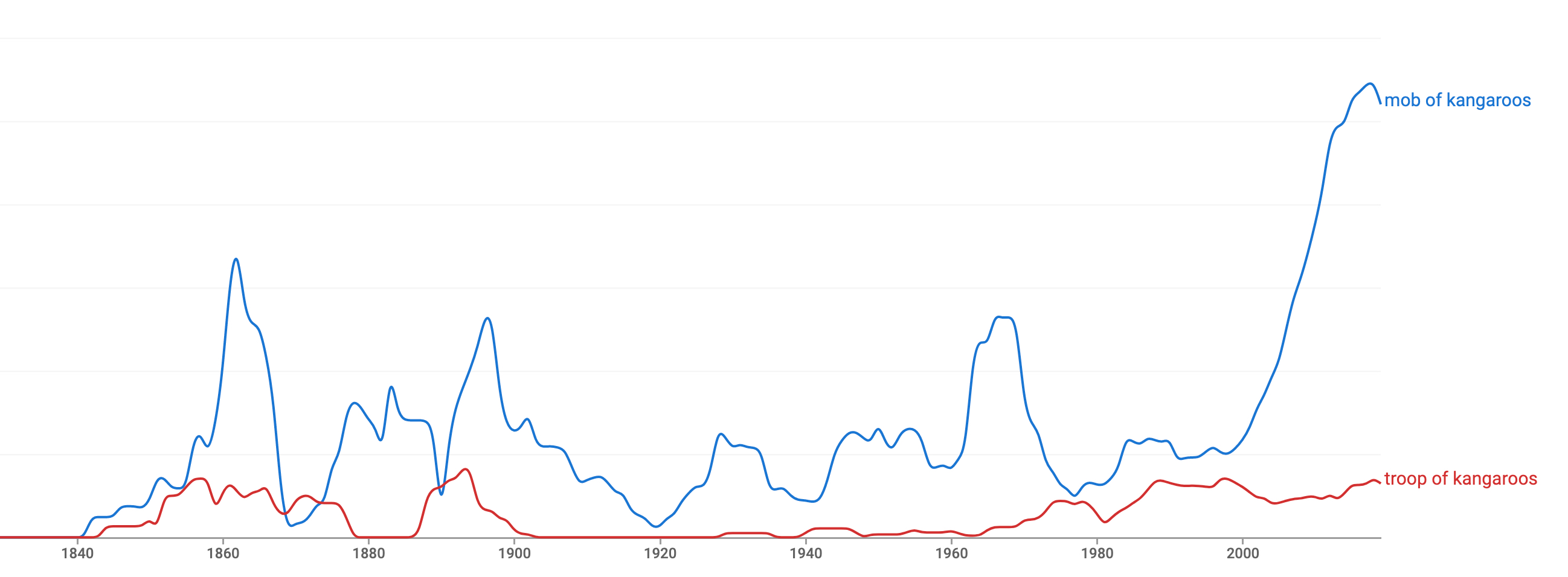 3. NGRAMs can be used to compare phrases and their occurence (in books) over time. I'll write more about NGRAMs in a future post, but note that you can now compare different corpora (e.g. British English vs. American English)