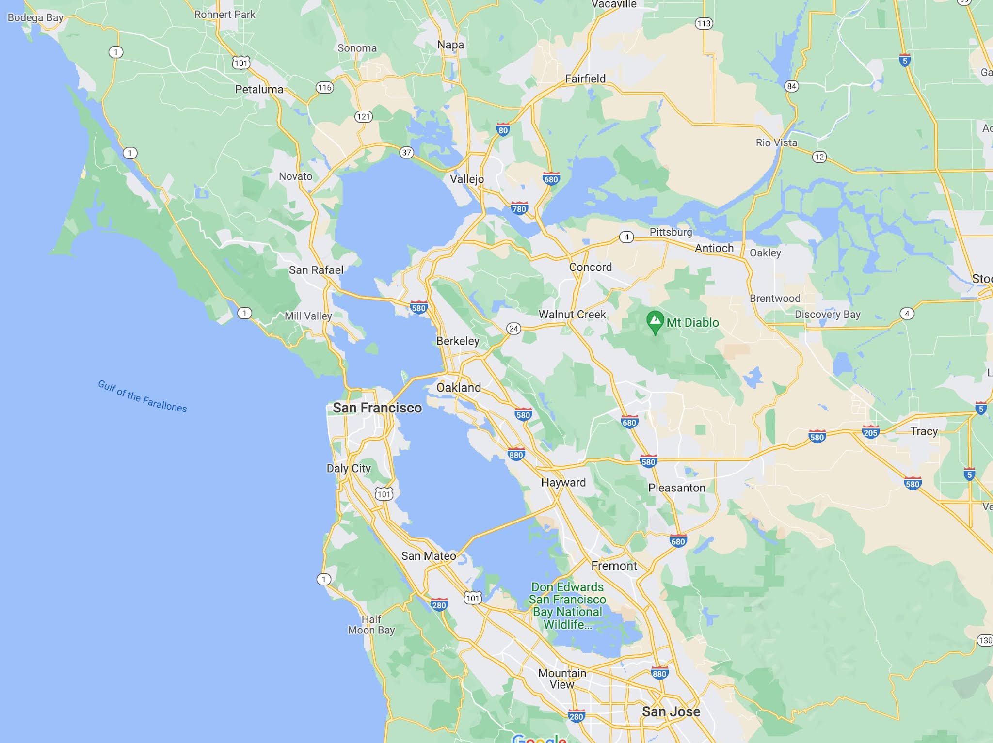 Here's one I found on Wikipedia: as you can see, 30 years later, some development has taken place along the north (the towns of Crockett, Aldona, and Port Costa), and most significantly, to the east (Martinez).
