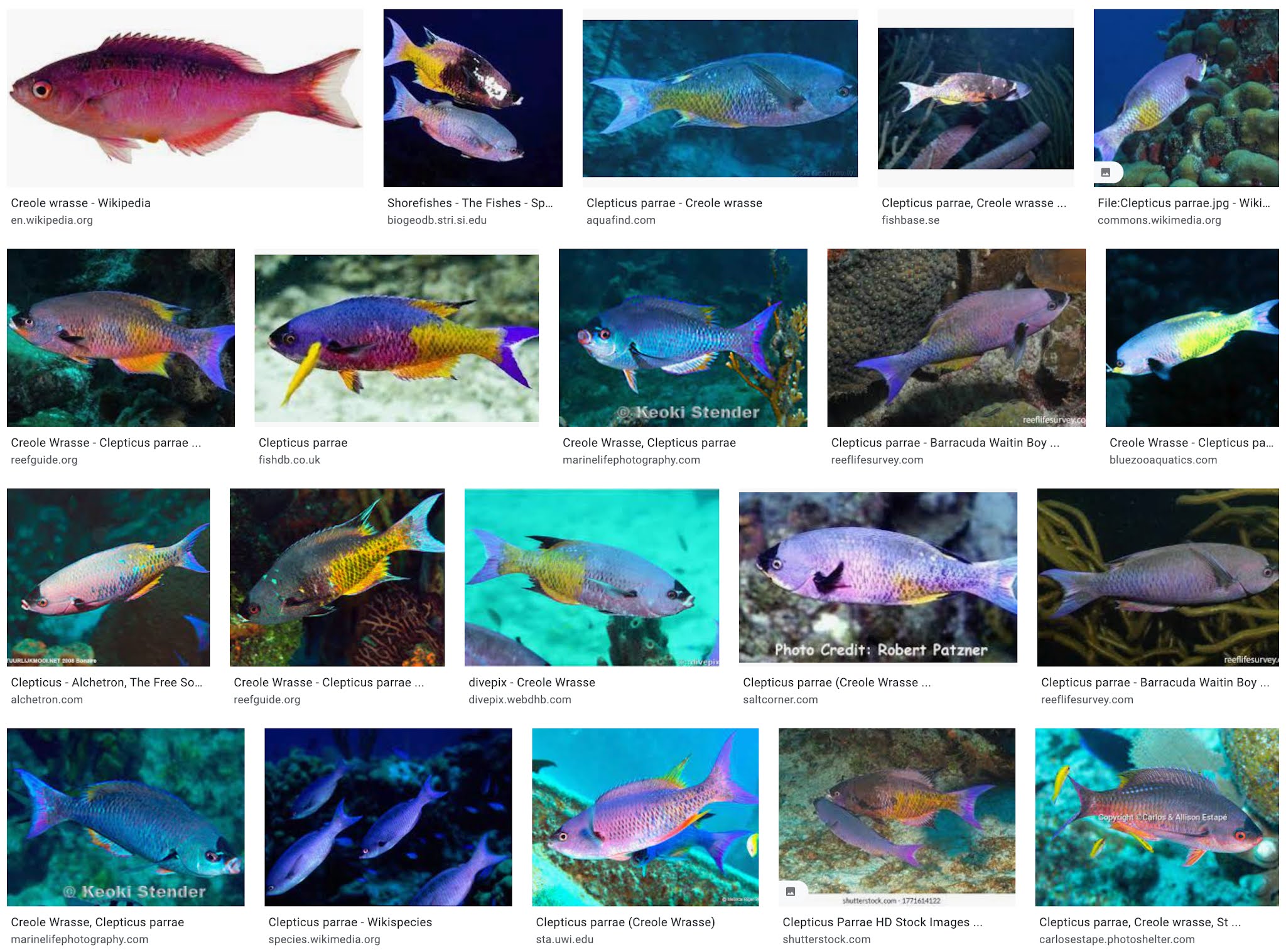 It turns out that this is a hard identification problem--the Creole wrasse Wikipedia picture is not representative. Check out this grid of images of the Creole wrasse to see the variations: