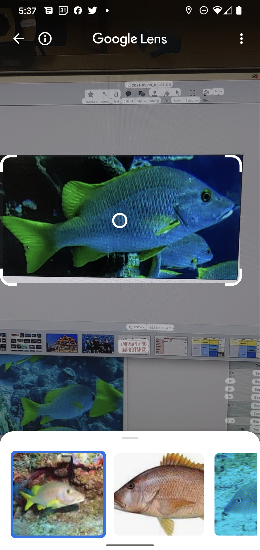 To search for these fish, you can do a Search-by-Image IF you isolate a single fish in your search (it's tough to identify an entire school, en masse). Here's me focusing in on just one fish in the big school...