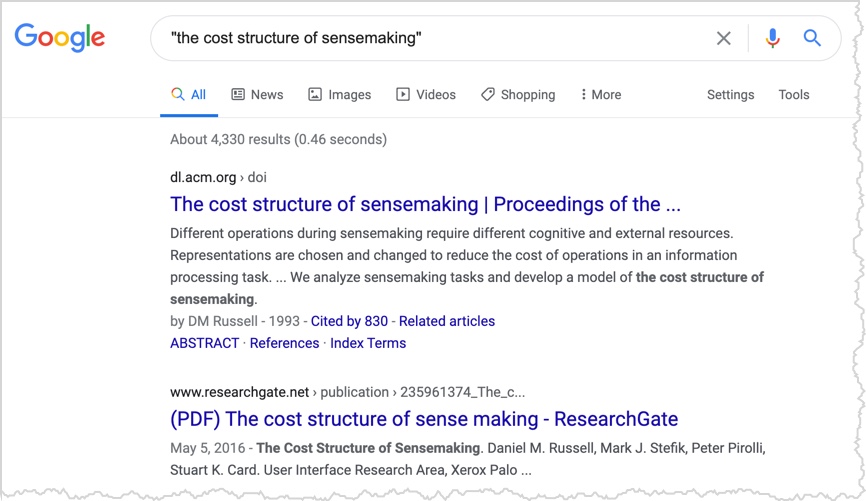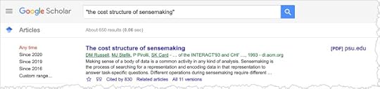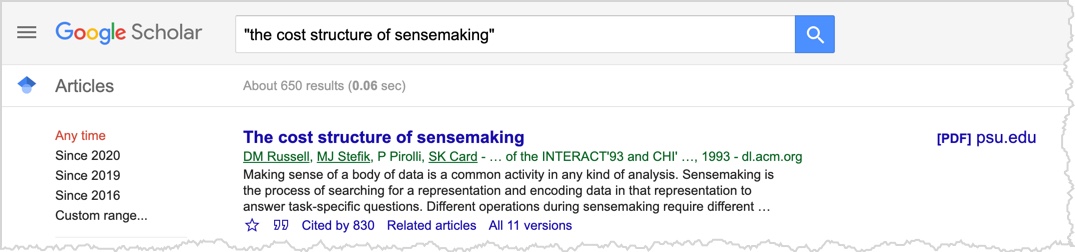 So, if you want to see the Google Scholar version of my 1993 paper on sensemaking, you won't find it by searching on regular Google.