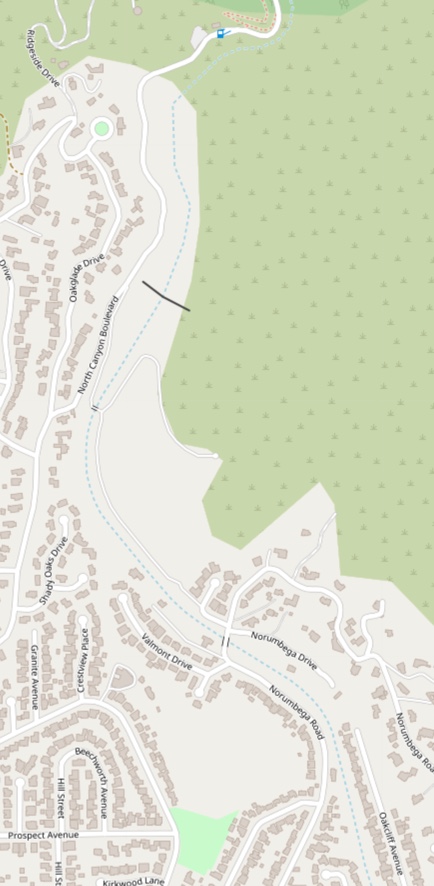 You can see what looks a LOT like a dam right where the Google Map shows "Sawpit debris basin." Compare this to the Bing map of the same area: