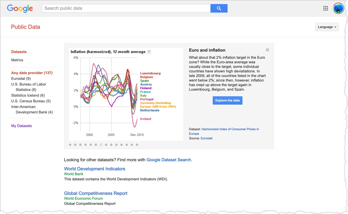 As you know, Google enjoys data. It enjoys it so much that we've made three different ways to find data sets that might be interesting to you. Here they are...