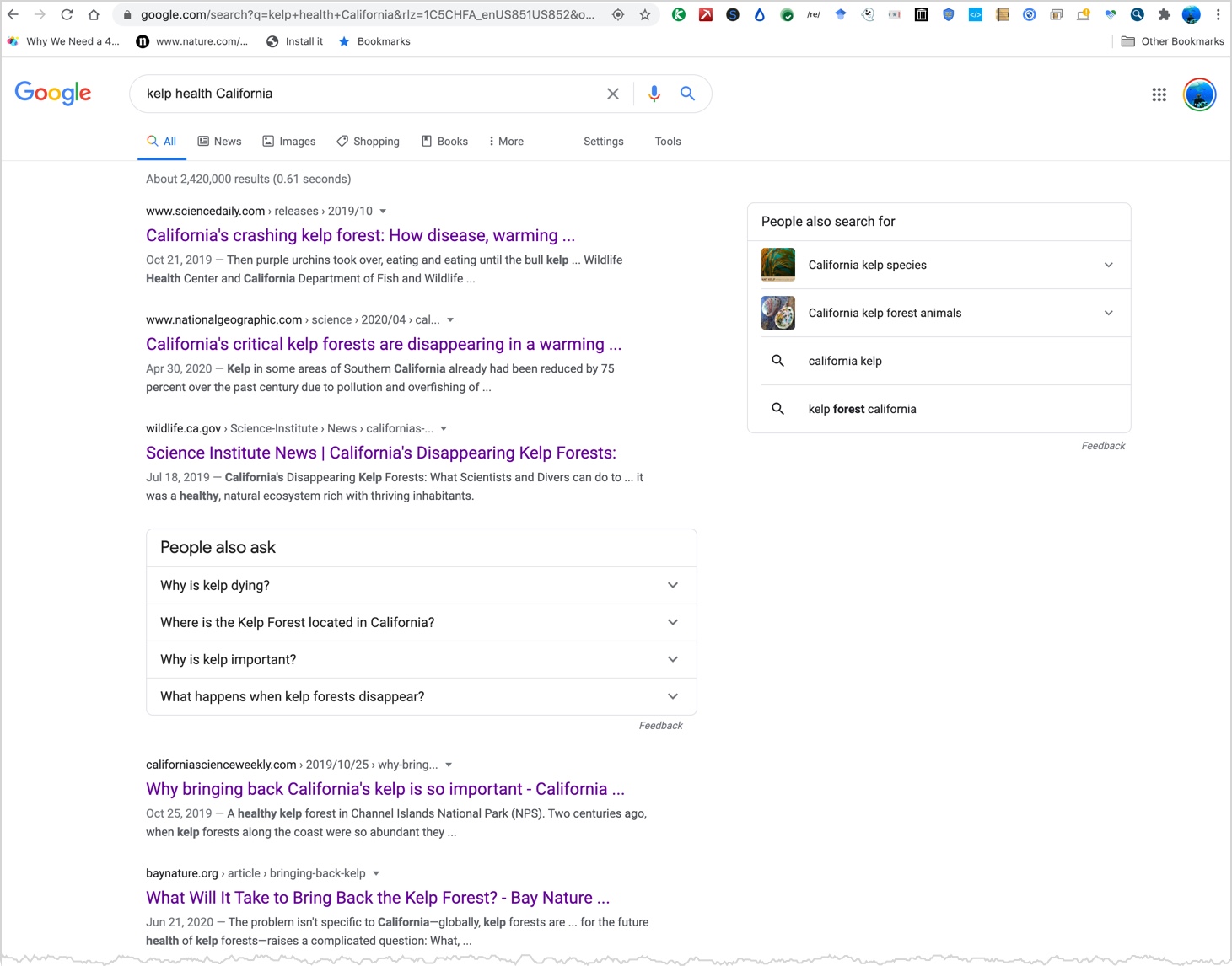 SearchResearch Challenge (10/7/20): How are the kelp forests doing?