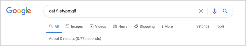 Note that if you do a slightly different search, putting GIF in the query, Google will figure out your image-search intent, and give a bunch of images on the SERP. That's a pretty good workaround.