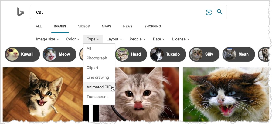 I'd seen an animated GIF of a cat. I thought I'd like to see it in detail, so I did what I thought was an obvious search. I did: