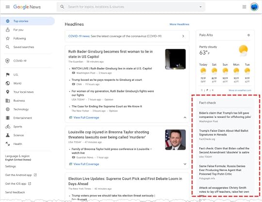 Note that News.Google.com has a fact-checking section all the time. (See below--the red dashed box.)