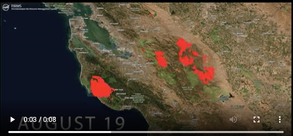 Answer: Find a time-lapse MAP of wildfire growth in California?