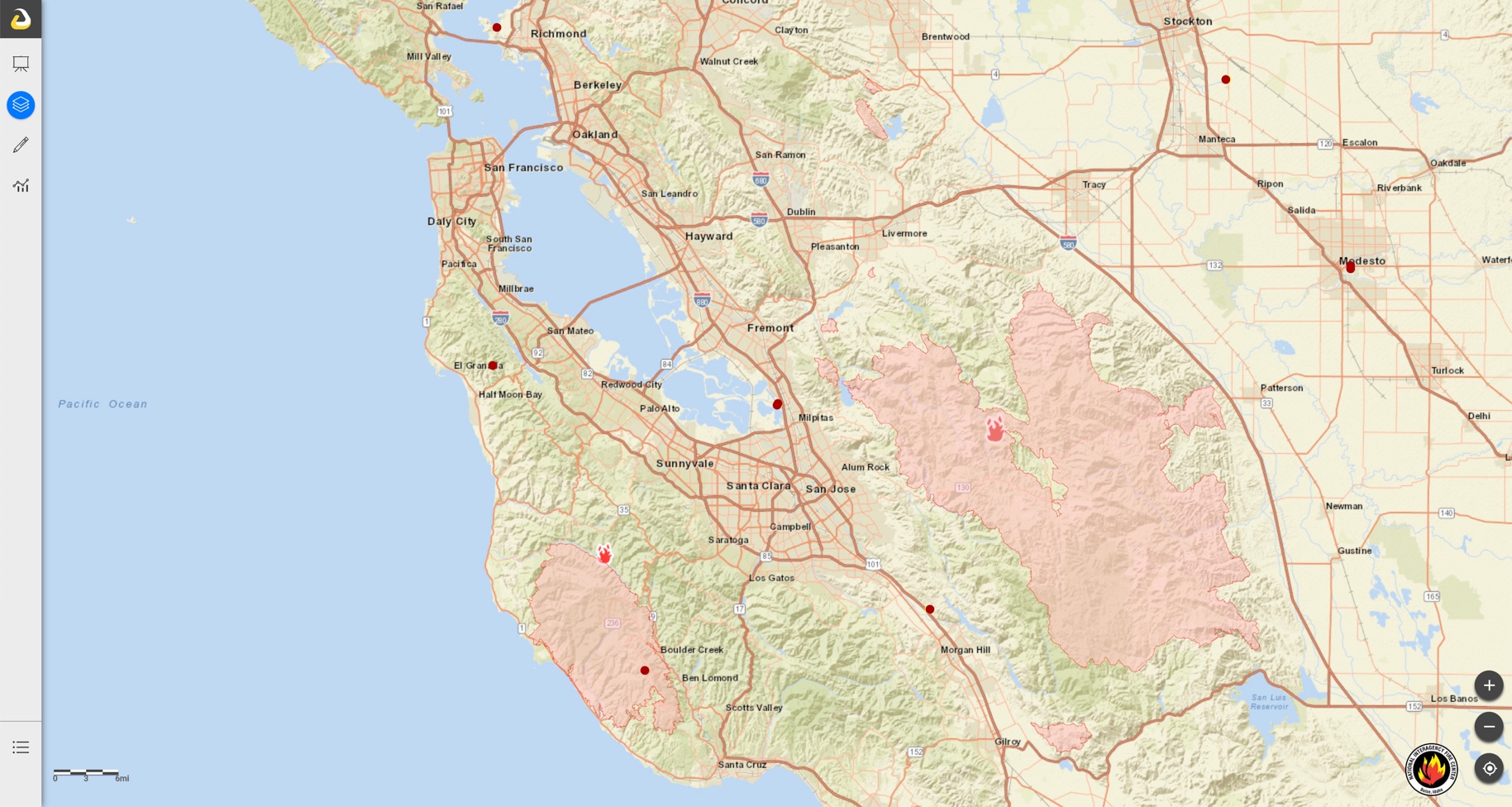 When I originally posted this SRS Challenge, the fire map for the Bay area looked like this: