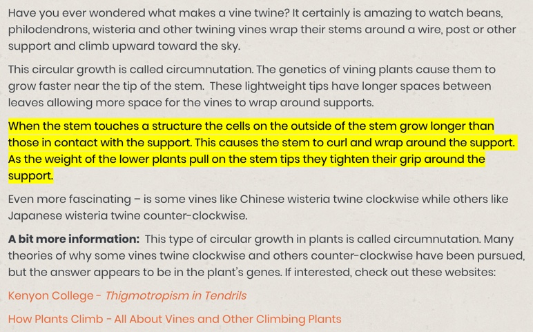 4. What do you call this behavior? (Note: there’s a specific term for a lot of these concepts.. in particular, the movement of a plant wrapping around something for support.)