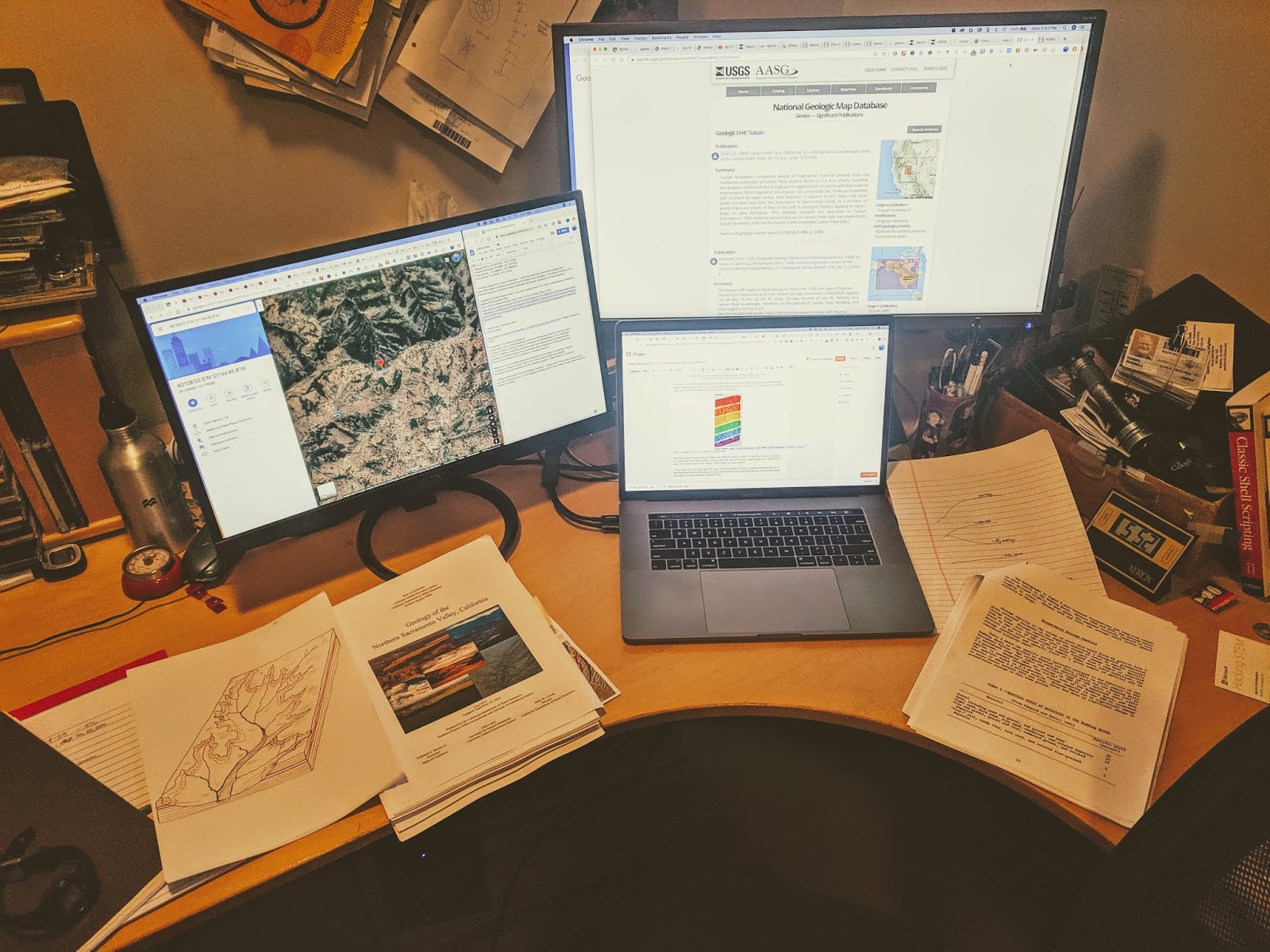 In fact, I had SO many maps and guidebooks and documents open at once that I finally had to bring in a 3rd monitor! This was my setup in my home office. Luckily, second (and even third) monitors don't cost that much anymore. And it vastly simplified what I was trying to do.