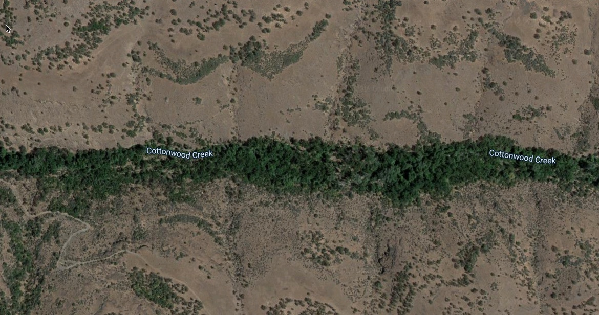 What I found so interesting about this map is that there's a long line of springs uphill from the green contour-following arcs of green. Remember how they seem to follow along the edge of the creeks?