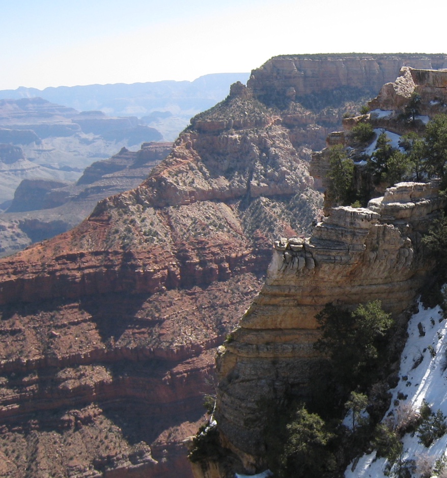 Grand Canyon cross-section showing bedding planes. Note how plants seem to grow