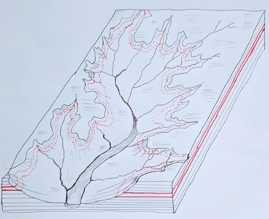 I'll spare you the next few hours of searching. I tried lots of variations of search terms having to do with bedding planes, hydrology, water flows, etc.