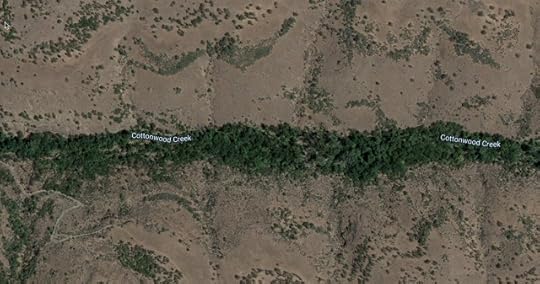 But as I was doing this, I realized that the last west of the Ishi Wilderness (that is, in the middle of our search area) is fairly covered in springs. Since springs mean water, and since water leads to green growing things, I wondered if there might not be a connection. Are all of those springs somehow making green things grow in arcs that follow contour lines?