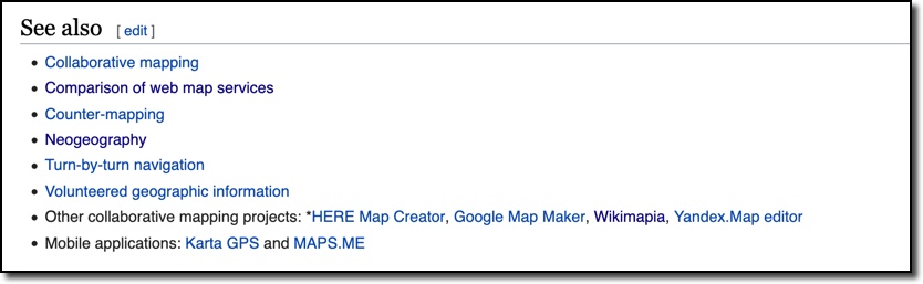 and then skipping down to the section called "See Also" (I've used this trick to find many other fascinating mapping services). As you can see, this is where I learned about the HERE Map Creator and learned the word neogeography .