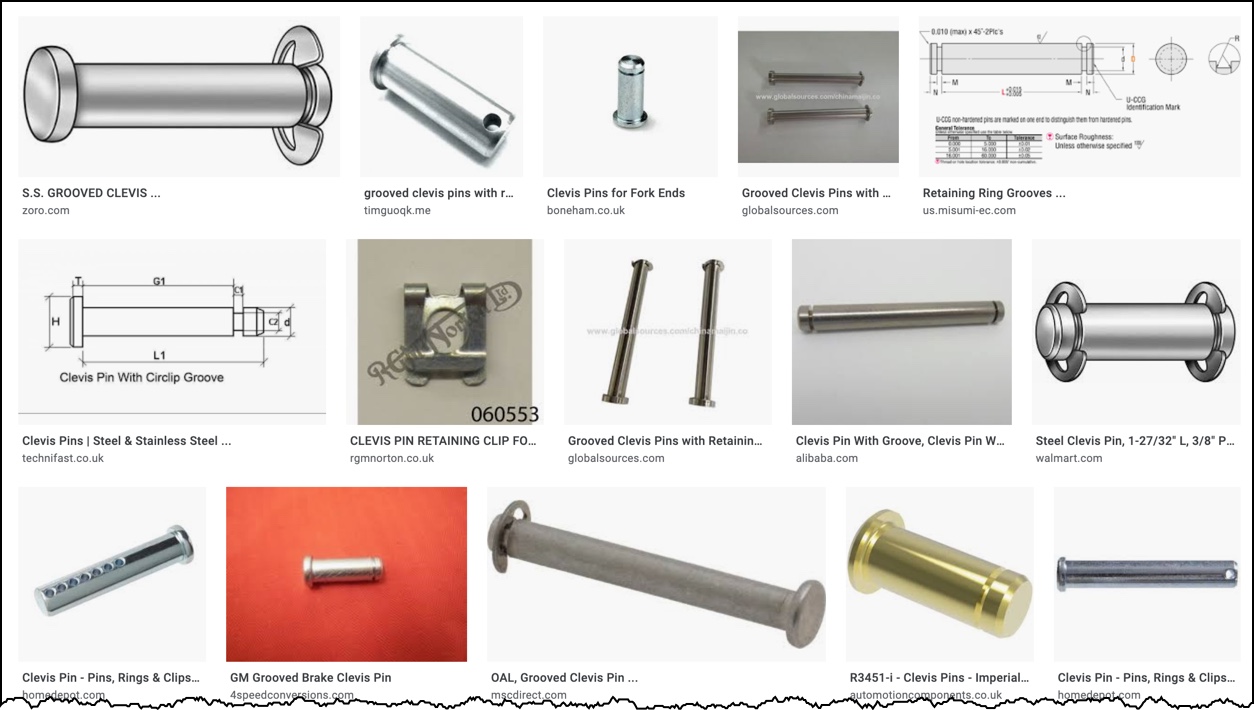2. Often a near-miss can give you clues about how to improve your search. In this case, I learned the word "clevis" from a SERP that wasn't great. But when I search for that term, all my results were excellent. Learn from your near-misses!