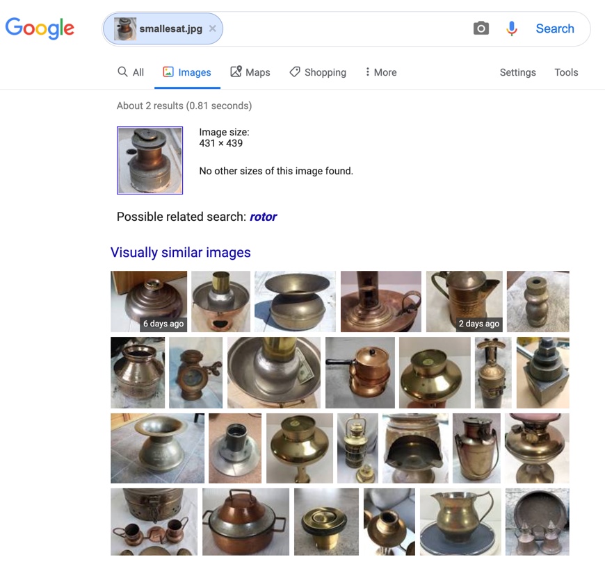 By contrast, if I do the same search using Google's Search-By-Image (using exactly the same cropped image), Google strikes out! Lesson learned: Try multiple search engines!