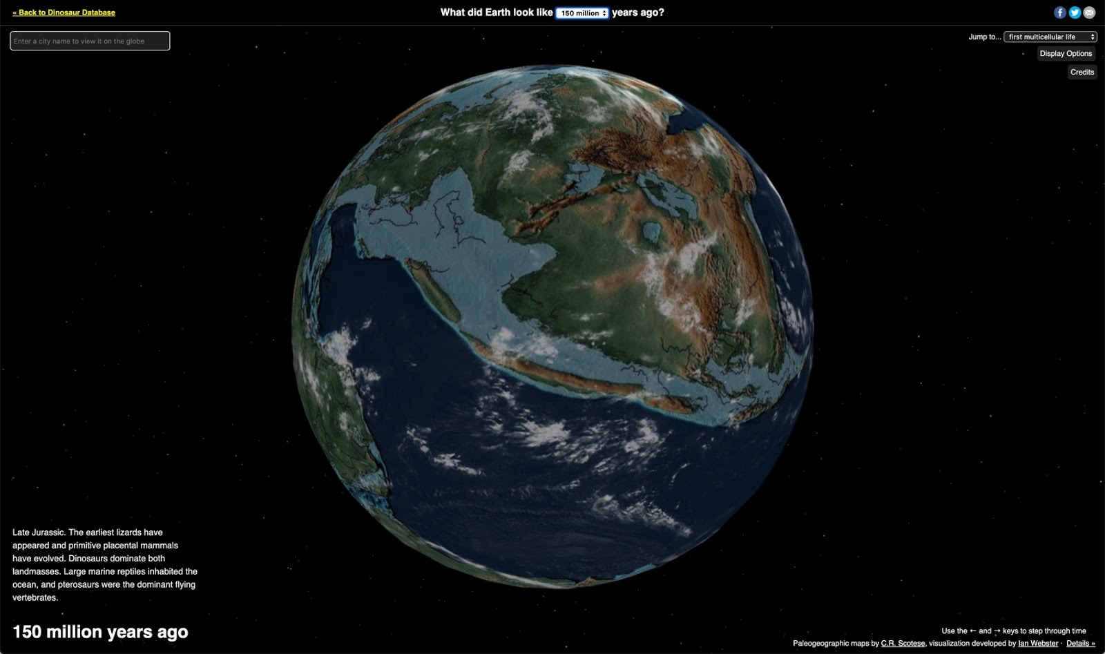 My favorite new mapping application? Using this exploration method, I discovered this interactive map application (DinosaurPictures) that shows the continents at different points over the past few million years. Here's what our planet looked like this 150M years ago... amazing.