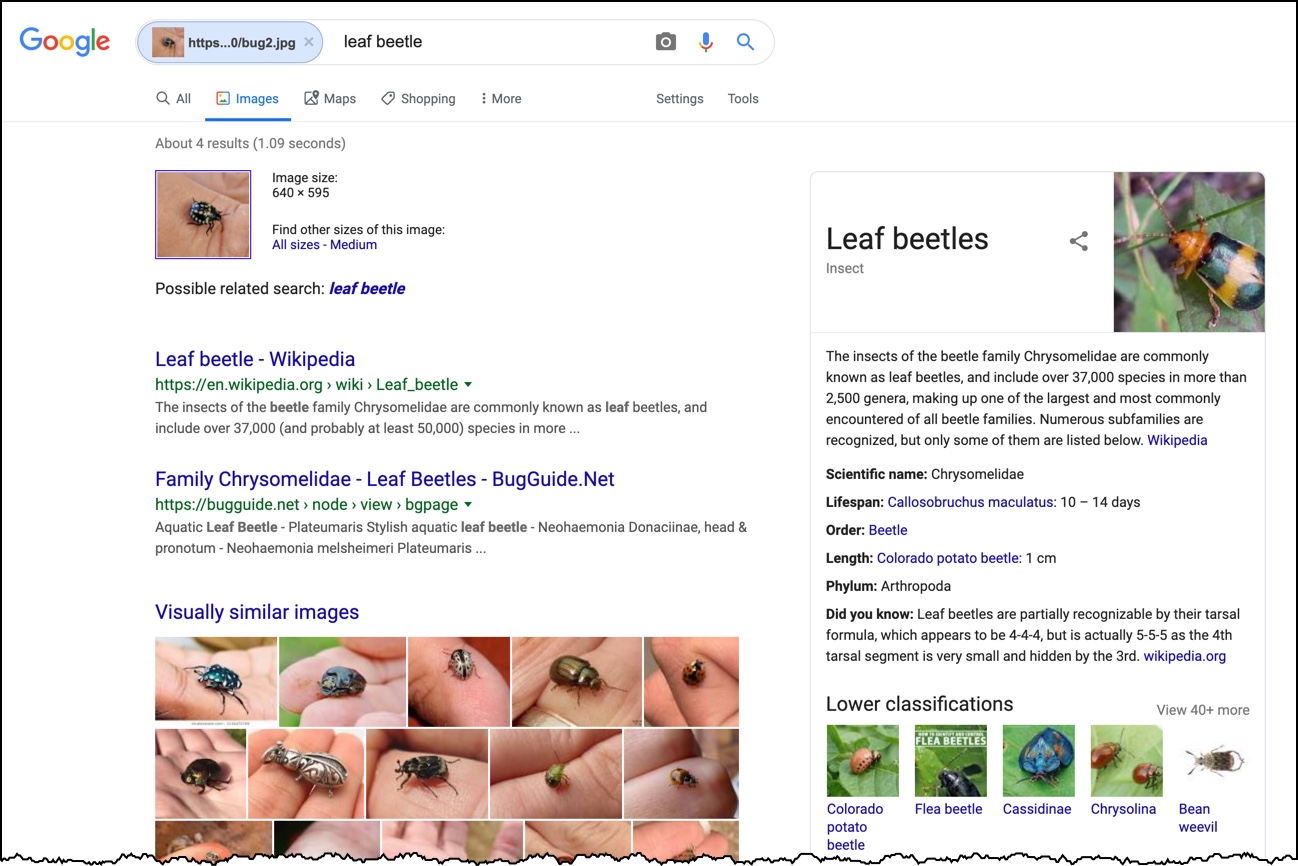 I thought that there MUST be other images of this fairly dramatic bug on the web, so I changed my search tactic and went to Yandex's search-by-image tool. Lo and behold, this is what I found: