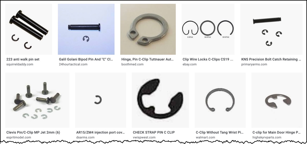 And that's not bad! In the first row, 4th from the left, it's described as a "pin and E-clip." Which is a good answer. But when I looked at the site, it's clear that this is because the clip is shaped like an E. You can't see it in my drawing, but it's actually shaped more like a "C."
