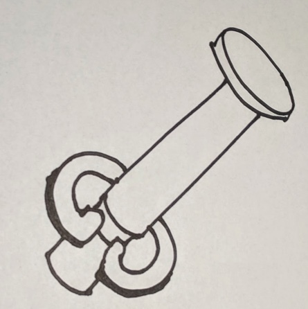 2. This is a diagram of an important part of a 3-hole punch that's currently broken. It's an aluminum metal pin with a collar-like-thing around the middle. That's the part that is missing, so the pin keeps slipping out onto the floor when I use it. I want to buy a new one… but... What do I call this? How can I find this online?