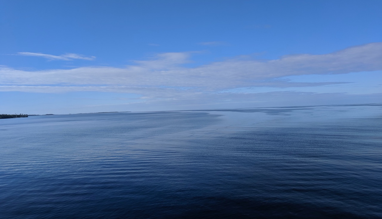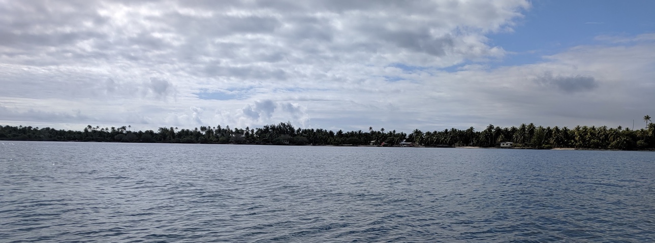 As I mentioned last week, I'm touring through French Polynesia for the next two weeks. It's kind of a long way to go, but it's completely worth it. Lots of long stretches as we sail from one island to the next. Many of these are coral atolls, and look a bit like this as we sail by. They're all low-slung, just barely out of the water. You wonder how they survive when a big storm comes through.
