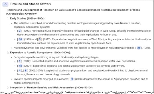 For our next post, we’ll try each of these new “deep research” tools and see how well they do with our Lake Nasser Challenge.