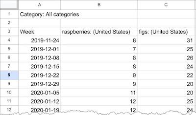 What we'll do is to run another Trends analysis, but keeping figs in the set so we have a consistent basis to compare to. So now, let's add in raspberries. Here's what I get: