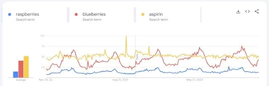 Here's a Trends chart for raspberries, blueberries and aspirin. I used aspirin because it's fairly constant throughout the year. Everyone has headaches all the time...