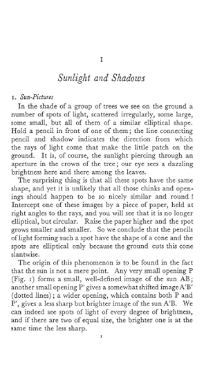 which led me to a blog post about dappled light effects (Gurney Journey) about the effects of dappling light in artwork, which led me to Edward Tufte's article about visualization, which led me to M. G. J. Minnaert's brilliant book Light and Color in the Outdoors. In there, we find this page: