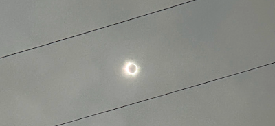 As it turns out, I was in Austin, TX with some friends to see the eclipse. The weather was cloudy, but everything worked out, more-or-less, with clouds sometimes parting enough for us to see the eclipse happening. I did't have any fancy photo gear, but I got a couple of okay shots with my iPhone 17--here's my best from the day.
