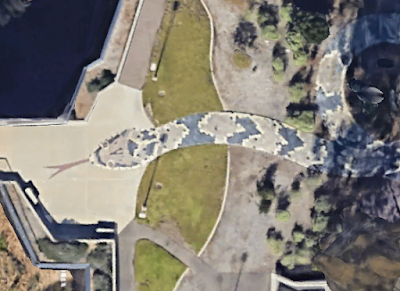 A quick search on Google Maps of the library shows an intriguing path on the east side of the library with what looks like a snake's head at the top (see the label "Snake Path"):