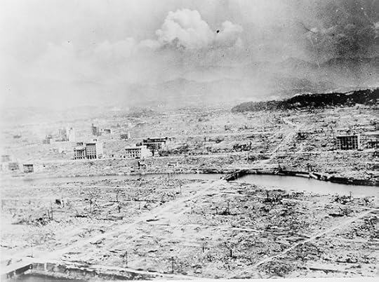 Torrential rain began to fall. Shimizu grew disoriented: “A tremendous clap of thunder went on and huge columns of brown clouds with dust and flame were making sheer screens all around.” The dead and dying surrounded him. “Some of them were carrying their wounded wives on their shoulders and some their dead children in their arms. They were all desperately shouting for help and calling aloud the names of their families.” The next day, he saw a B-29 plane circling the city. His anger erupted: “What the hell do you think there is still left to be bombed in this devastated city?”
