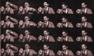 This 1894 image consists of a series of 45 frames for Edison's kinetoscopic movie showing a man, Fred Ott, sneezing. / Prints and Photographs Division
