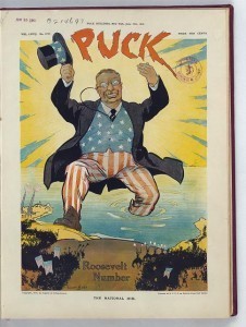 The Library's collection of political cartoons includes a variety of Roosevelt-related items, many coming from Puck, America's first successful humor magazine. Roosevelt was favored on the cover more than 80 times in his career.