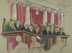 The Supreme Court hearing a case in 1986. Artist: Marilyn Church. Prints and Photographs Division.