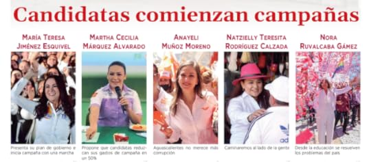 Las cinco candidatas que iniciaron su campaña para ser gobernadora de Aguascalientes, María Teresa Jiménez Esquivel, de la coalición Va por Aguascalientes (PAN-PRD-PRI); Martha Cecilia Márquez Alvarado, de la Coalición Juntos haremos historia por Aguascalientes (Partido del Trabajo y Partido Verde Ecologista de México); Anayeli Muñoz Moreno, de Movimiento Ciudadano; Natzielly Teresita Rodríguez Calzada, de Fuerza por México Aguascalientes; y Nora Ruvalcaba Gámez, del Movimiento de Regeneración Nacional; las cinco aseguraron que van a ganar, no mienten, esa es la convicción con que se tiene que aspirar al cargo, así están obligadas a jugar para convencer al electorado.