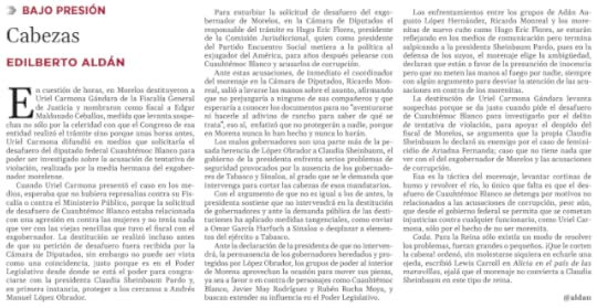 En cuestión de horas, en Morelos destituyeron a Uriel Carmona Gándara de la Fiscalía General de Justicia y nombraron como fiscal a Edgar Maldonado Ceballos, medida que levanta sospechas no sólo por la celeridad con que el Congreso de esa entidad realizó el trámite sino porque unas horas antes, Uriel Carmona difundió en medios que solicitaría el desafuero del diputado federal Cuauhtémoc Blanco para poder ser investigado sobre la acusación de tentativa de violación, realizada por la media hermana del exgobernador morelense.