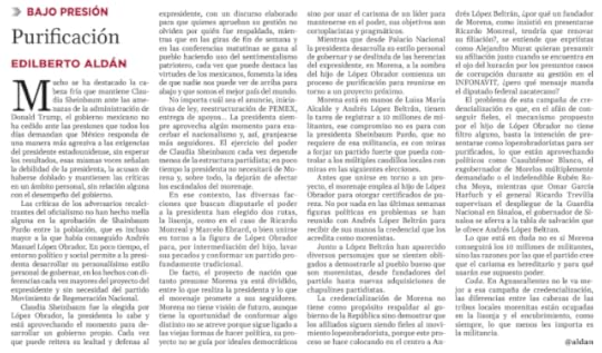 Mientras que desde Palacio Nacional la presidenta desarrolla su estilo personal de gobernar y se deslinda de las herencias del expresidente, en Morena, a la sombra del hijo de López Obrador comienza un proceso de purificación para reunirse en torno a un proyecto próximo.