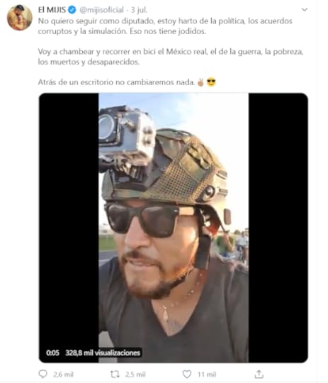 Se hartó Pedro César Carrizales Becerra, diputado de San Luis Potosí, mejor conocido como El Mijis y en Twitter compartió los motivos de su cansancio, escribió: “No quiero seguir como diputado, estoy harto de la política, los acuerdos corruptos y la simulación. Eso nos tiene jodidos. Voy a chambear y recorrer en bici el México real, el de la guerra, la pobreza, los muertos y desaparecidos. Atrás de un escritorio no cambiaremos nada”.