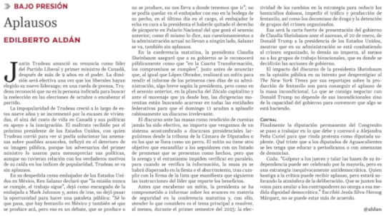 La impopularidad de Trudeau creció a lo largo de estos nueve años y se incrementó por la escasez de viviendas, el alza del costo de vida en Canadá y sus políticas en apoyo a la inmigración. El maltrato recibido por el próximo presidente de los Estados Unidos, con quien Trudeau corrió para ver si podía solucionar las amenazas sobre posibles aranceles, influyó en el deterioro de su imagen pública, porque los adversarios del primer ministro lo usaron para menospreciar sus políticas, aunque no tuvieran relación con los verdaderos motivos de su caída en los índices de popularidad, Trudeau se va sin aplausos.
