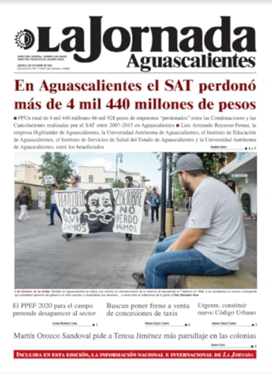 Un total de 4 mil 440 millones 66 mil 928 pesos de impuestos “perdonados” entre las Condonaciones y las Cancelaciones realizadas por el SAT entre 2007-2015 en Aguascalientes Luis Armando Reynoso Femat, la empresa Highlander de Aguascalientes, la Universidad Autónoma de Aguascalientes, el Instituto de Educación de Aguascalientes y el Instituto de Servicios de Salud del Estado de Aguascalientes, entre los beneficiados
