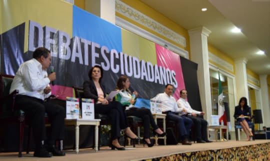 Tercer bloqueSe prende el “debate” que en su tercer apartado aborda el tema de Corrupción, la candidata del Verde inicia confesando su inexperiencia y que eso la hace diferente al resto de los contendientes, quienes sí tienen experiencia, pero en corrupción, y menciona a Roberto Tavárez, empleado de Lorena Martínez, a quien acusa de haber recibido un doble finiquito. Saraí Ornelas, sentada junto a la exalcaldesa y la confronta: por casos de corrupción como ese es que el Verde decidió no ir en alianza con el PRI, señala que a los priistas les da tanta pena su partido que comprende que Lorena Martínez no porte los colores del tricolor y prefiera vestirse de morado (la candidata priista iba vestida de azul). Los invitados priistas comienzan a abuchear, la moderadora pide que respeten las reglas y no intervengan, a los candidatos les pide que el debate se centre el debate en las propuestas. Lorena Martínez no hace caso y en su réplica le dice a Saraí que viene con encomienda del PAN, que Martín del Campo usa como paleros a los del Verde para criticarla, pero que ahí están los papeles de entrega recepción de su administración, que si Martín del Campo no encontró ninguna anomalía entonces no pueden acusarla, y que si el exalcalde descubrió un caso de corrupción y no lo denunció, entonces es cómplice. Martín del Campo se zafa del pleito señalando que él no mira para atrás, sólo de frente.El de Morena mira de lejos el pleito, en su intervención Daniel Gutiérrez Castorena acusa de corrupción a los gobiernos del PRI y el PAN, y propone un fiscal anticorrupción efectivo y penas más severas a los políticos corruptos.El de Nueva Alianza, en materia de corrupción propone que haya más transparencia, que la sociedad audite al gobierno, que las compras de Gobierno se puedan fiscalizar a través de plataformas digitales, que la fiscalía anticorrupción sea ciudadana, menciona en múltiples ocasiones que la ciudadanización es necesaria, pero es evidente que no conoce los instrumentos y herramientas para combatir la corrupción.Lorena Martínez insiste en el mensaje que quiere posicionar José Antonio Meade: la corrupción es más un asunto de personas que de partidos, y propone para combatir la corrupción un Estado de derecho sólido, instituciones fuertes y mayor participación ciudadana, así como fortalecer las instituciones del Sistema Anticorrupción. De llegar al Senado indica que realizará una iniciativa para crear la Ley General de Evaluación Gubernamental. La candidata del PRI es la primera de los aspirantes en dirigirse al público y pedir que la contraten.Martín del Campo ha hecho suyo el discurso del Frente, por ahí van sus pronunciamientos en materia anticorrupción, que se pueda enjuiciar desde el presidente de la República hasta el servidor público de menor rango, eliminar el fuero, mejorar las herramientas para transparentar la función pública, una fiscalía anticorrupción autónoma, que todos los trámites gubernamentales sea posible seguirlos y hacerlos en línea y muerte civil a políticos corruptos.A partir de que lanzó la acusación contra el empleado de Lorena Martínez, la candidata Saraí Ornelas no ha dejado de hacer muecas, enarca las cejas, frunce la boca, se burla de cualquier cosa que proponga el resto de los aspirantes, en su turno, sobre corrupción propone elaborar una “ley anti moches” que no es capaz de señalar en qué consistiría, y destinar a cultura el 2% de todas las transacciones que se hagan desde el gobierno.La intervención de la moderadora en esta ronda consiste en preguntar a Daniel Gutiérrez Castorena por su agenda anticorrupción y lo que el de Morena hace es defender la propuesta de López Obrador para elegir al fiscal; al de Nueva Alianza le informa que lo que propone ya existe y se llama Compranet, Diego Vázquez trastabillea y rectifica: entonces mejorar ese sistema y ciudadanizarlo. Viridiana Río le dice a Lorena Martínez que ya hay organismos que se encargan de la evaluación del gobierno, la candidata del PRI le aclara que no como el que ella propondrá, que realizaría una evaluación externa y multilateral, que impida que sea el gobierno quien se ponga sus propias metas y que sea para todos los órdenes de gobierno.